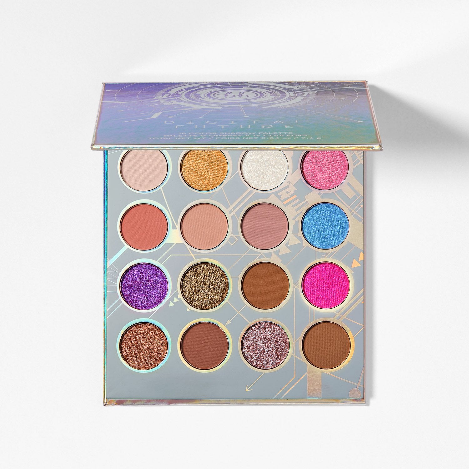 Power your inner makeup artist with our Digital Future – 16 Color Shadow Palette, featuring an array of bright shades and complementary neutrals for chic, visionary looks. The lush rainbow of velvety mattes, shimmers and sparkling glitter finishes offers vibrant color payoff and blends beautifully. Whether you opt for a monochromatic pop of lilac, aqua or bright poppy red—or a modern smoky effect—the boundary-pushing options are infinite.