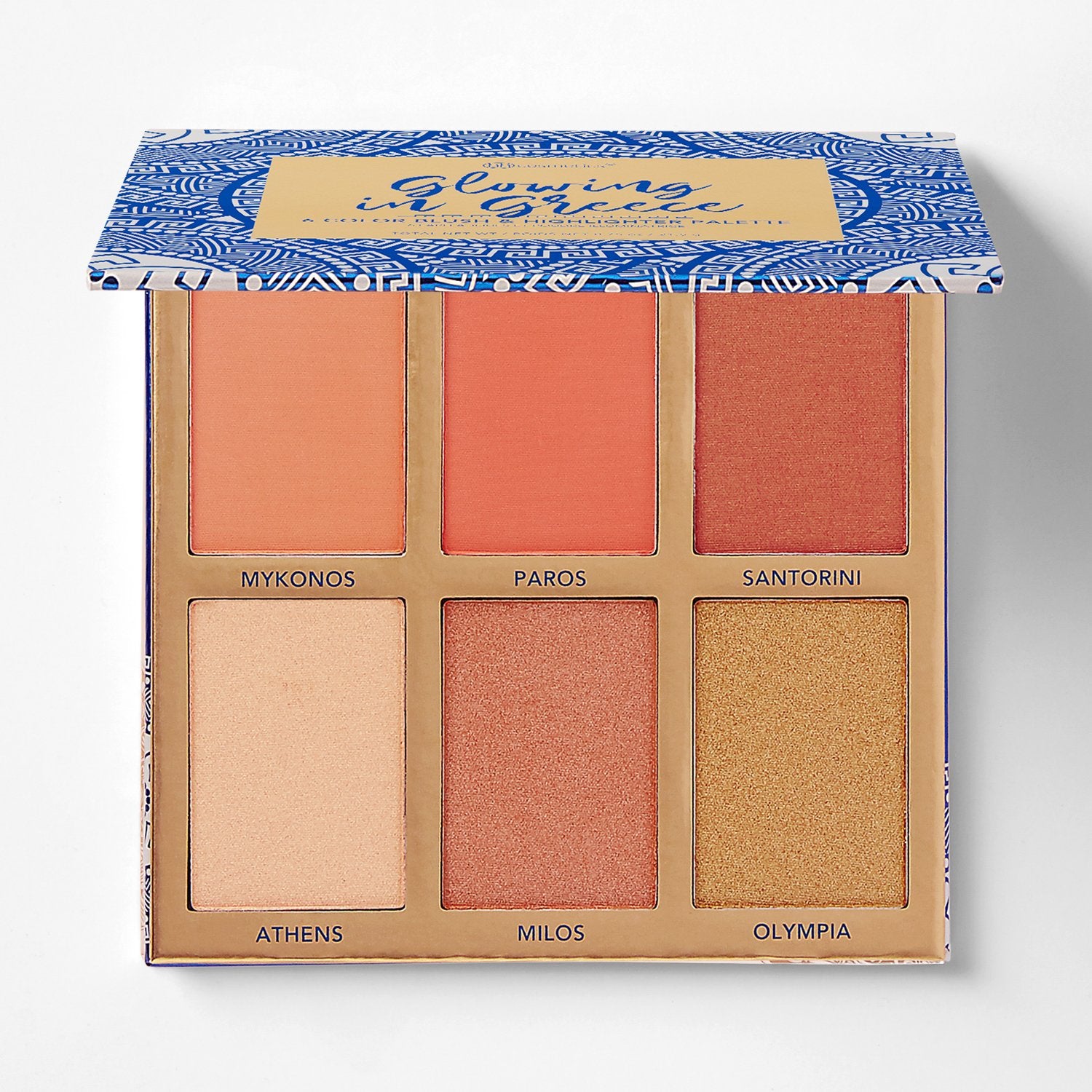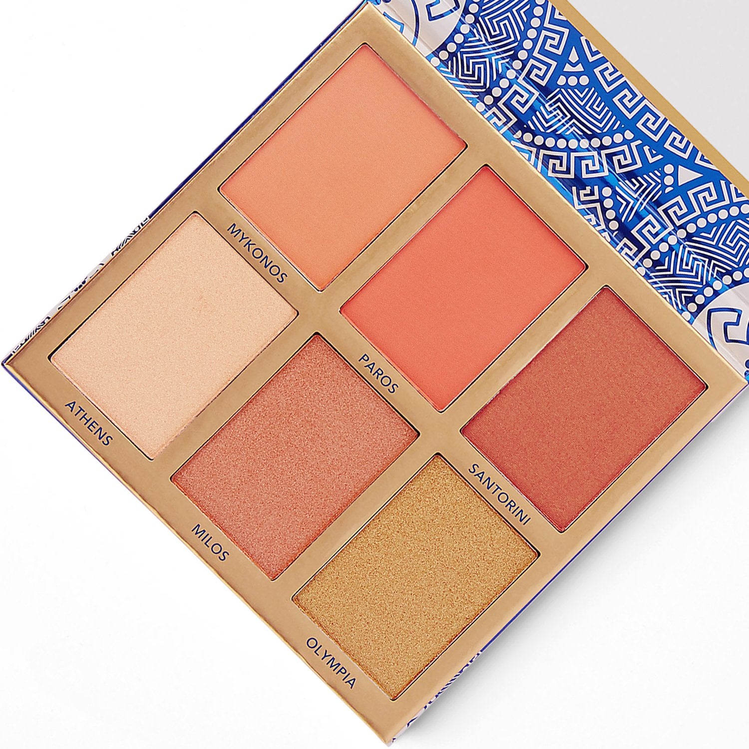 Light up your features like a sun-kissed goddess with the Glowing in Greece Blush and Highlighter Palette. The 6 pigment-rich shades blend seamlessly into the skin for a smooth, radiant effect to accent cheekbones, inner eye corners, bridge of nose or cupid’s bow. Worn alone or mixed, layered and blended, the buildable formula lets you achieve a customized natural flush or a high-shine Grecian glow.