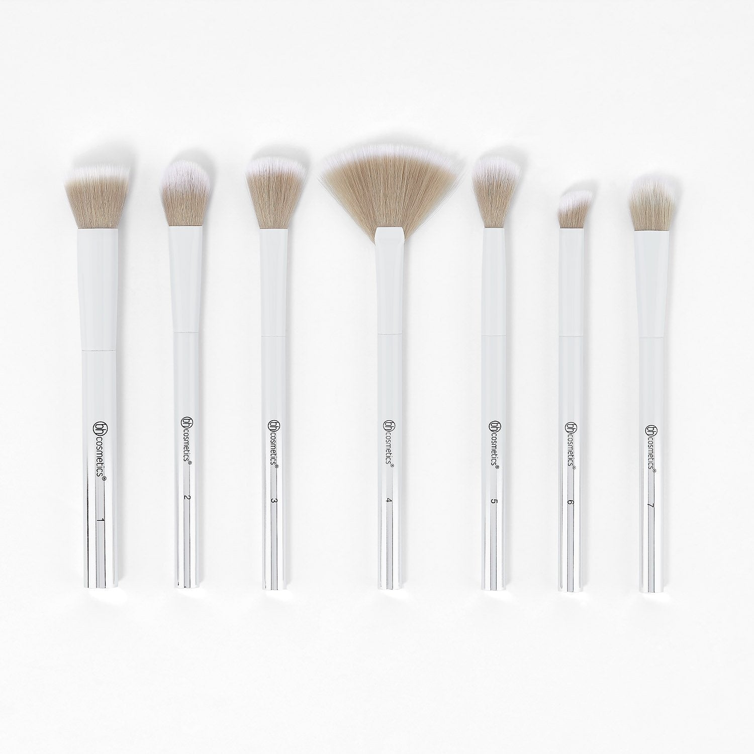 Perfect your technique with our Highlighting Essentials - 7 Piece Brush Set, a decadent collection of tools designed to hug the contours of the face for a luminous look. The brushes feature sleek ombré metalized handles and plush two-tone synthetic bristles to deposit the perfect amount of pigment and blend like a dream, whether you prefer a sheer hint of highlight or a dramatic glow.
