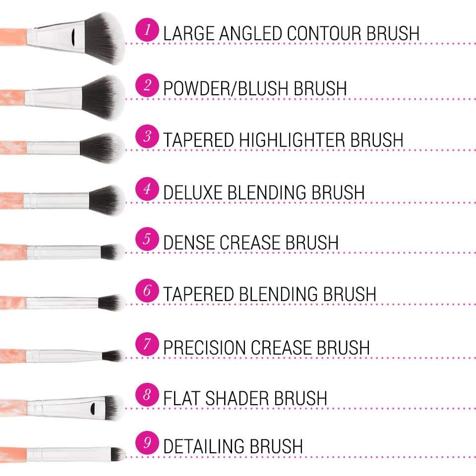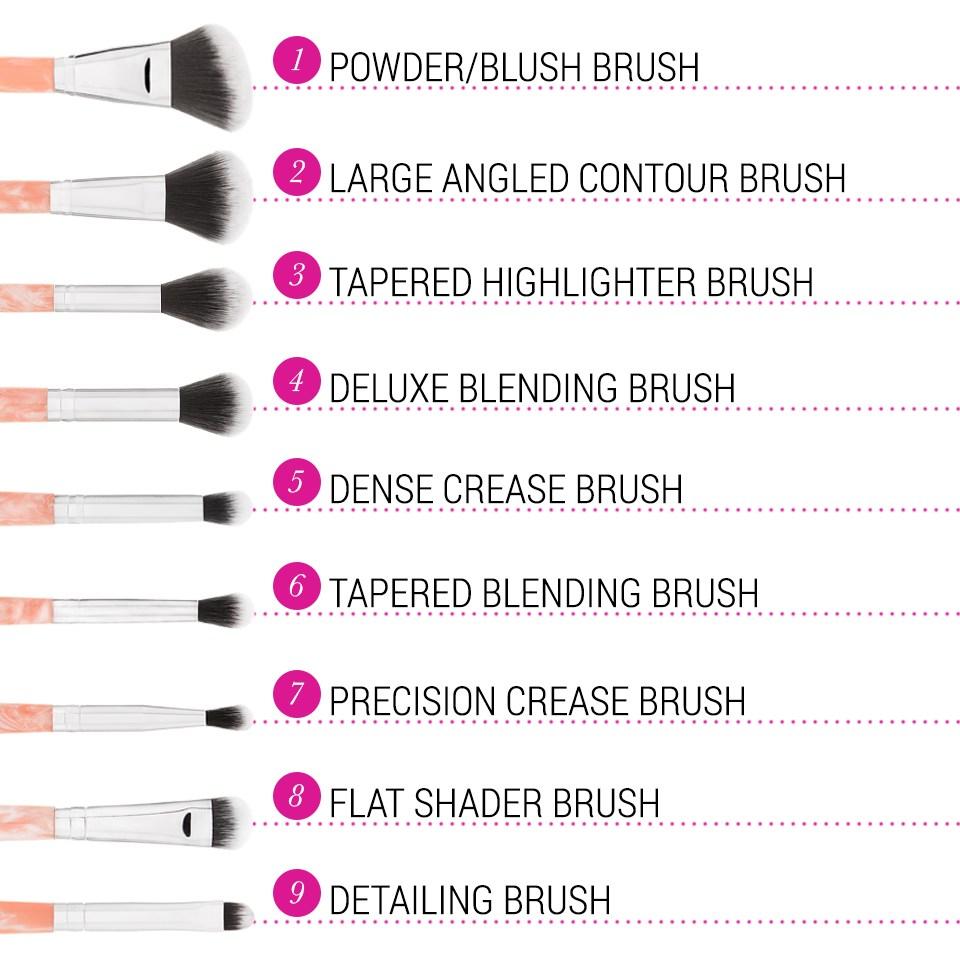 Add a romantic accent to your makeup table with our Rose Quartz 9 Piece Makeup Brush Set, a collection of face and eye brushes featuring marbleized pink handles and soft synthetic bristles. These versatile brushes allow you to achieve flawless, professional-looking makeup application every time.